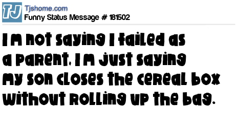 X says I’m not saying I failed as a parent, I’m just saying my son closes the cereal box without rolling up the bag.