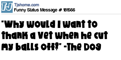 X says "Why would I want to thank a Vet when he cut my balls off?" -The Dog