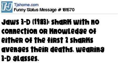 X says Jaws 3-D (1983): shark with no connection or knowledge of either of the first 2 sharks avenges their deaths, wearing 3-D glasses.