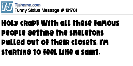 X Holy crap! With all these famous people getting the skeletons pulled out of their closets, I'm starting to feel like a saint.