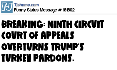 X says BREAKING: NINTH CIRCUIT COURT OF APPEALS OVERTURNS TRUMP'S TURKEY PARDONS.