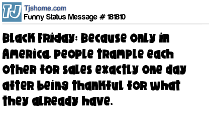 - # 162447 ...... Black Friday: Because only in America, people trample others for sales exactly one day after being thankful for what they already have.