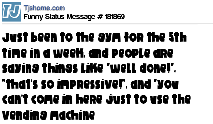 X says Just been to the gym for the 5th time in a week, and people are saying things like "well done!", "that's so impressive!", and "you can't come in here just to use the vending machine