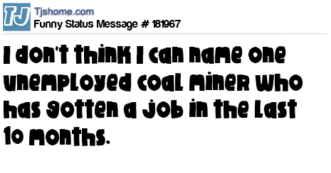 X is I don't think I can name one unemployed coal miner who has gotten a job in the last 10 months.