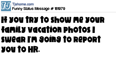 X says If you try to show me your family vacation photos I swear I'm going to report you to HR.