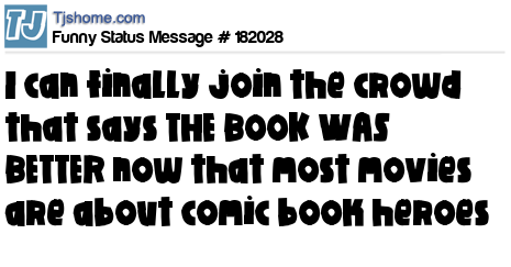 X says I can finally join the crowd that says THE BOOK WAS BETTER now that most movies are about comic book heroes