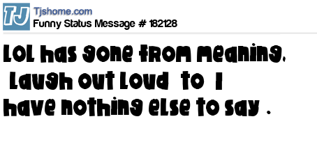 - # 6777 thinks it's funny that "LOL" has gone from meaning "Laugh Out Loud" to "I have Nothing Else To Say"