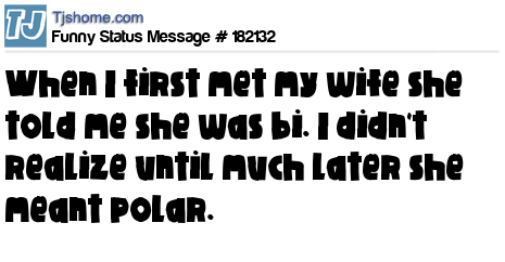 X says When I first met my wife she told me she was bi. I didn't realize until much later she meant polar.