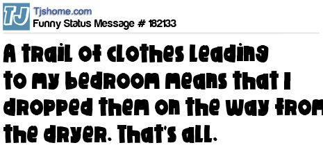 - # 196572 "A trail of clothes leading up to a bedroom before marriage ment a night of pashionate love making. Now it means you dropped them on your way from the dryer.