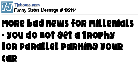 X says More bad news for millenials - you do not get a trophy for parallel parking your car