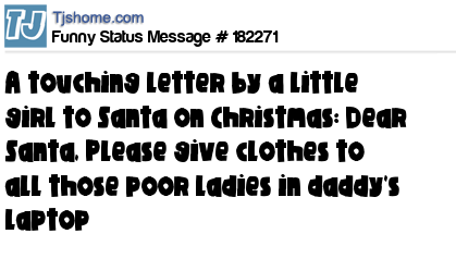 - # 82983 A touching letter by a little girl to Santa on Christmas: Dear Santa, Please give clothes to all those poor ladies in daddy's laptop.