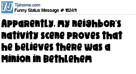 X says Apparently, my neighbor's nativity scene proves that he believes there was a Minion in Bethlehem