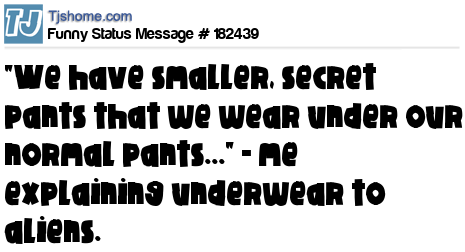 X says "We have smaller, secret pants that we wear under our normal pants..." - me explaining underwear to aliens.
