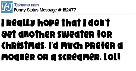 - # 142509 I really hope that I don't get another sweater for Christmas. I'd much prefer a moaner or a screamer....