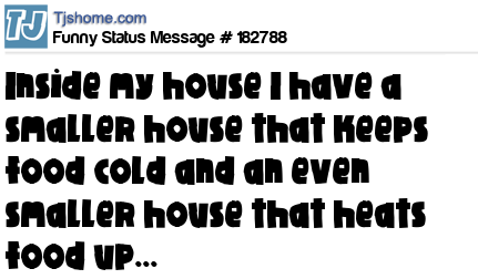 X Inside my house I have a smaller house that keeps food cold and an even smaller house that heats food up...
