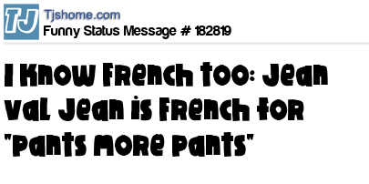 X says I know French too: Jean val Jean is French for "pants more pants"