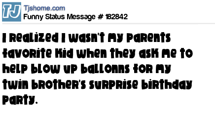 X is I realized I wasn't my parents favorite kid when they ask me to help blow up ballonns for my twin brother's surprise birthday party.