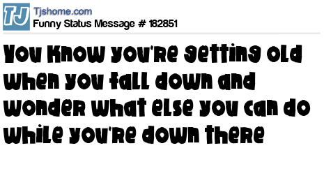 X says You know you're getting old when you fall down and wonder what else you can do while you're down there