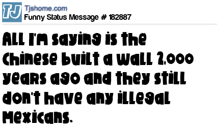 - # 173898 Alls I'm sayin is the Chinese built a wall 2,000 years ago - and they still don't have any Mexicans. . .