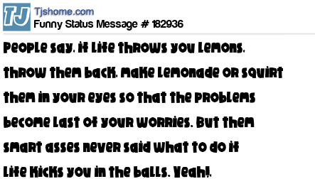 X says People say, if life throws you lemons, throw them back, make lemonade or squirt them in your eyes so that the problems become last of your worries. But them smart asses never said what to do if life kicks you in the balls. Yeah!, there's no recovery from