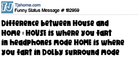 X says Difference between House and Home : HOUSE is where you fart in headphones mode HOME is where you fart in Dolby surround mode