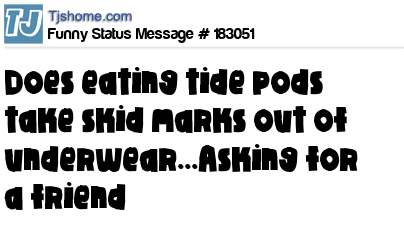 - # 183036 Does eating Tide Pods take skid marks out of underwear? Asking for a friend...