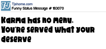 - # 104110 The Karma cafe has no menus. You get served what you deserve.