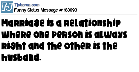 - # 104939 Marriage... a relationship between a person who's always right and her husband.