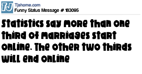 - # 155918 Statistics say more than one third of marriages start online. The other two thirds will end online...