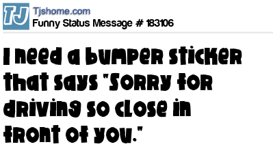 X says I need a bumper sticker that says "Sorry for driving so close in front of you."