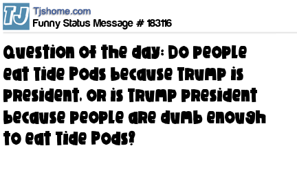 X is Question of the day: Do people eat Tide Pods because Trump is president, or is Trump president because people are dumb enough to eat Tide Pods?