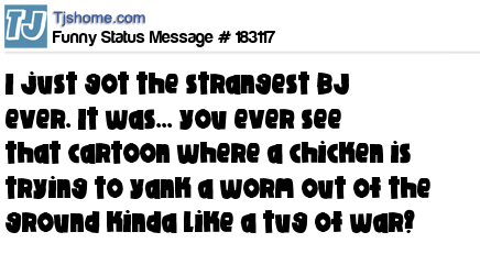 X says I just got the strangest BJ ever. It was... you ever see that cartoon where a chicken is trying to yank a worm out of the ground kinda like a tug of war?
