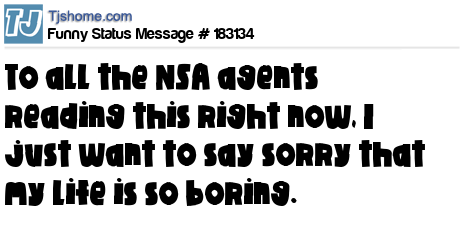 X says To all the NSA agents reading this right now, I just want to say sorry that my life is so boring.
