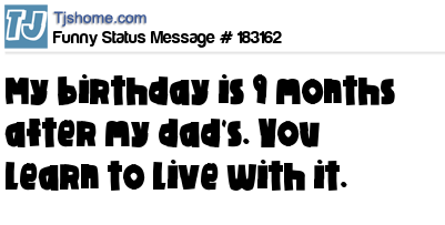 X says My birthday is 9 months after my dad's. You learn to live with it.