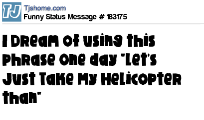 X says I Dream of using this phrase One day "Let's Just Take My Helicopter than"