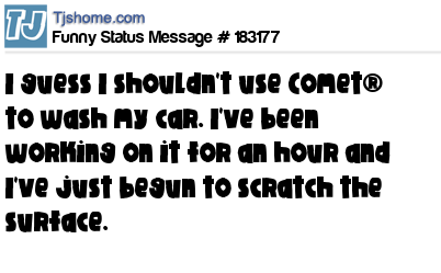 - # 191382 I guess I shouldn't have used Comet® to wash my car. I've been working on it for an hour and I've only begun to scratch the surface.