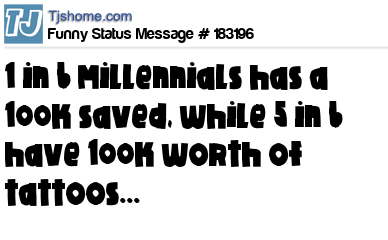 X 1 in 6 Millennials has a 100k saved, while 5 in 6 have 100k worth of tattoos...