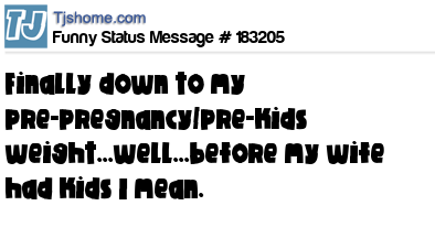 X says Finally down to my pre-pregnancy/pre-kids weight...well...before my wife had kids I mean.