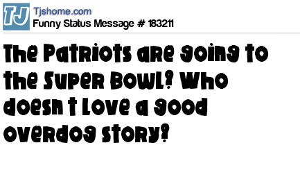 X says The Patriots are going to the Super Bowl? Who doesn’t love a good overdog story?