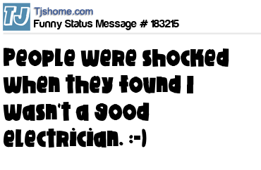 - # 192934 People are usually shocked when they find out I'm not a very good electrician.