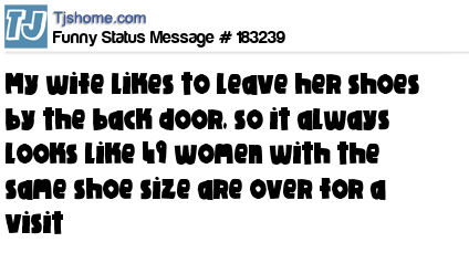 X says My wife likes to leave her shoes by the back door, so it always looks like 49 women with the same shoe size are over for a visit