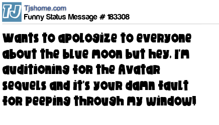 X says wants to apologize to everyone about the blue moon but hey, I'm auditioning for the Avatar sequels and it's your damn fault for peeping through my window!
