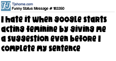 X says I hate it when google starts acting feminine by giving me a suggestion even before I complete my sentence