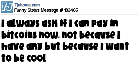 X says I always ask if I can pay in bitcoins now, not because I have any but because I want to be cool