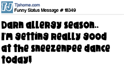 X says Darn allergy season.. I'm getting really good at the sneezenpee dance today!