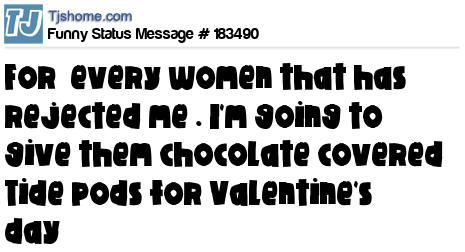 X is For every women that has rejected me . I'm going to give them chocolate covered Tide pods for Valentine's day