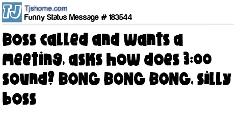 X says Boss called and wants a meeting, asks how does 3:00 sound? BONG BONG BONG, silly boss