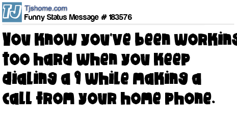 - # 207203 You know you are working too hard when you go to make a call from your home telephone and first dial 9.