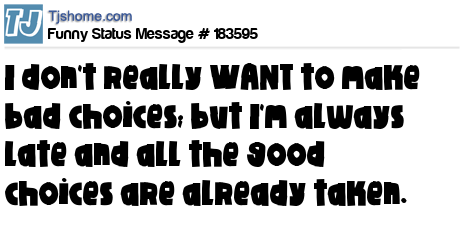 - # 174702 I don't really WANT to make bad choices; but I'm always late, and all the good choices are already taken.