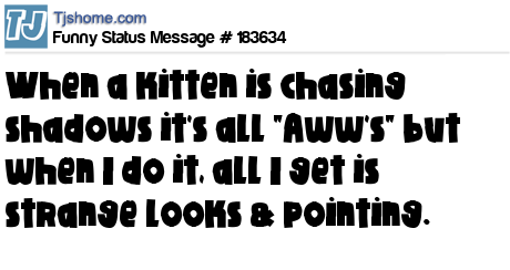 X is When a kitten is chasing shadows it's all "Aww's" but when I do it, all I get is strange looks & pointing.